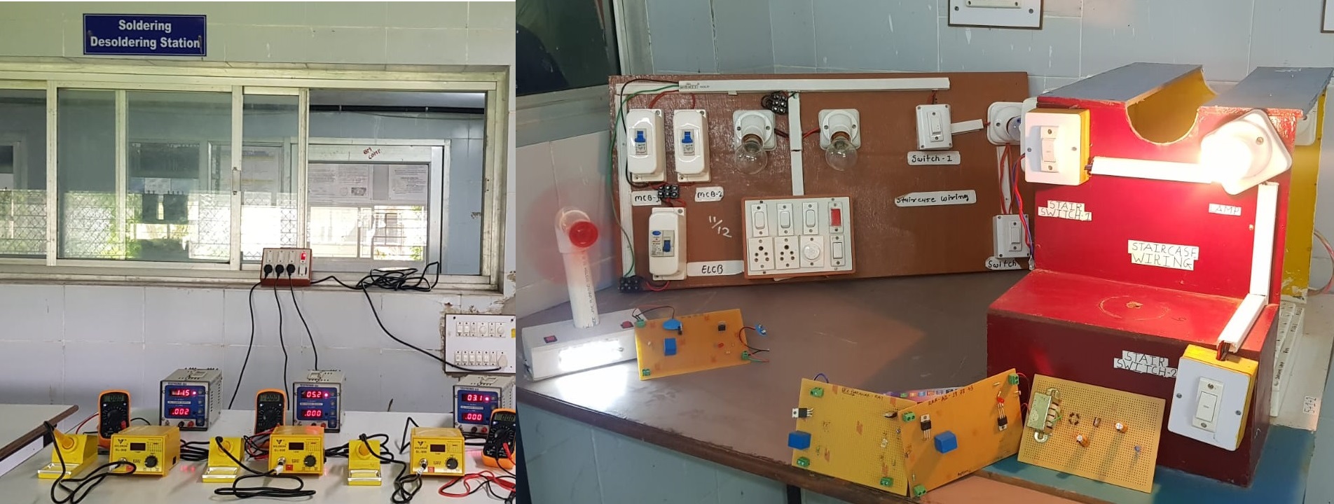 The Digital Fabrication Workshop equips students with essential hands-on skills required in the Electrical/Electronics and Computer hardware industries. With practical applications, students gain a comprehensive understanding of the Electrical hazards and electronics fabrication process. Students develop application based working models in this laboratory and also test them for improvement of their confidence level.